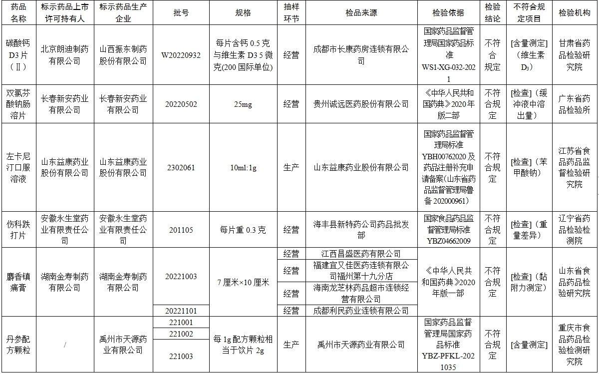 经重庆市食品药品检验检测研究院检验,标示为禹州市天源药业有限公司生产的3批次丹参配方颗粒不符合规定,不符合规定项目为含量测定。