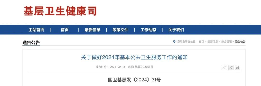 9月13日,国家卫生健康委、财政部、国家中医药局和国家疾控局四部门联合下发《关于做好2024年基本公共卫生服务工作的通知》(以下简称《通知》)。再次明确公卫经费补助标准!